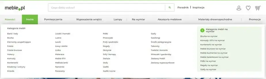 Układ menu w meble.pl