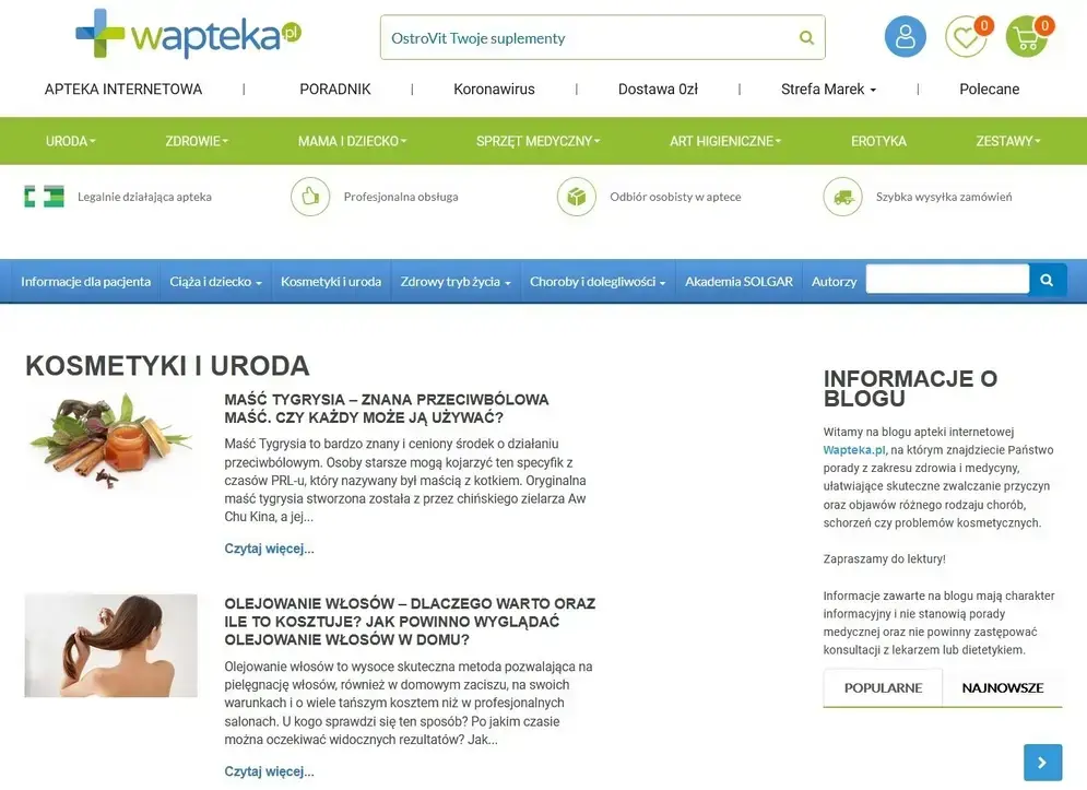 Fragment bloga w serwisie wapteka.pl