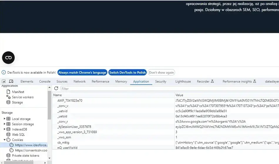 2. Analiza strony pod kątem ciasteczek i ich kategoryzacja
