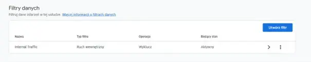 Brak wykluczenia ruchu wewnętrznego może wskazywać, że większość naszych użytkowników pochodzi z miejscowości lub miejsca, gdzie pracują osoby odpowiedzialne za obsługę strony. To prowadzi do podejmowania decyzji na bazie zniekształconych danych. Konfiguracja filtrów ruchu wewnętrznego pozwala nam na ograniczenie tego zniekształcenia danych oraz zbieranie tylko jakościowego ruchu na stronie.