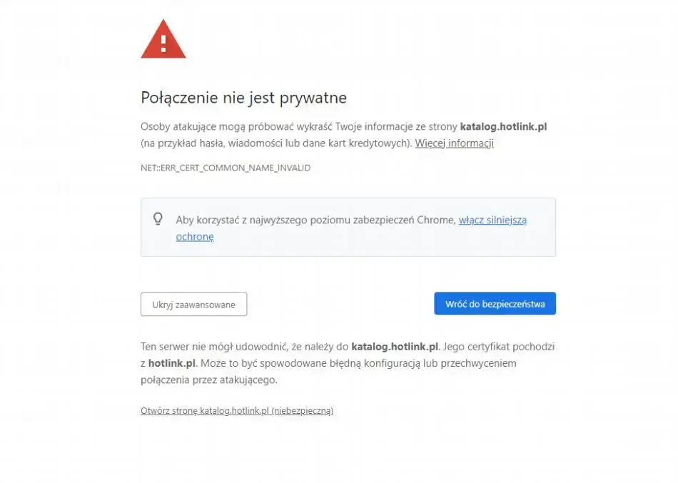 Wdrożenie certyfikatu SSL ma bardzo duże znaczenie dla pozycjonowania strony. Sklep internetowy bez wdrożonego SSL nie zdobędzie zaufania użytkowników. Odwiedzając niezabezpieczoną stronę przeglądarka nas informuje o niebezpieczeństwie. Przed adresem strony zostanie wyświetlony komunikat „Niezabezpieczona”.