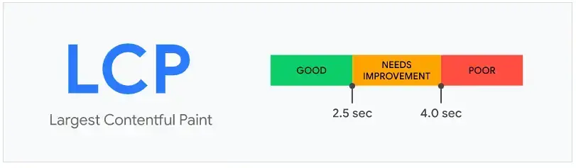 Largest Content Paint (LCP) to wskaźnik szybkości ładowania strony. To czas jaki jest potrzebny do załadowania największego elementu na stronie.