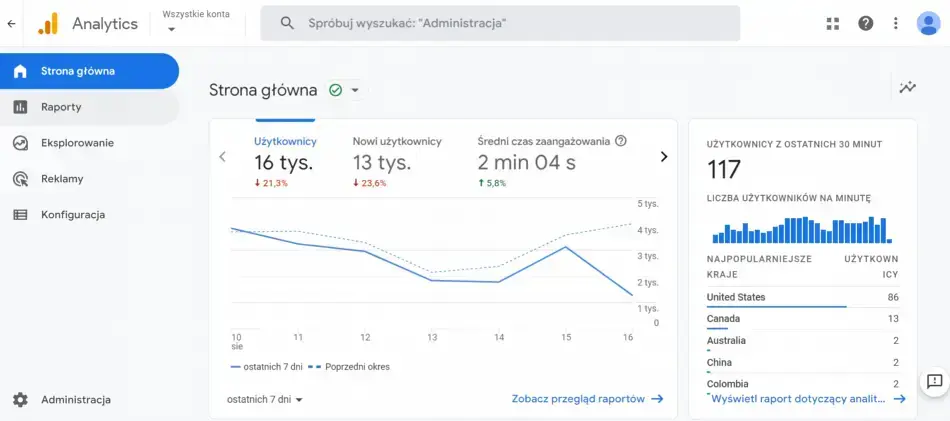 Widok interfejsu GA4. W Google Analytics 4 zmienia się zarówno zasada działania narzędzia, jak i jego interfejs.