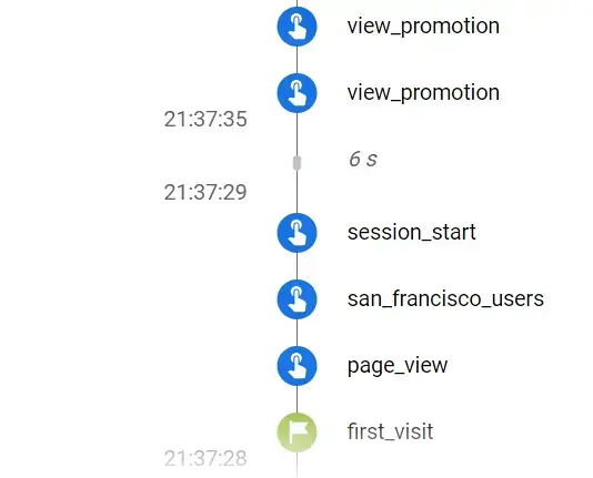 Widok przedstawiający kolejność rejestrowana zdarzeń przez GA4 w DebugView. Nowa wersja narzędzia będzie działać w oparciu o zdarzenia, nie sesje.