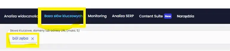 Należy wybrać „Bazę słów kluczowych” i wpisać interesującą frazę.