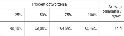 W tej kategorii nasza reklama poradziła sobie bardzo dobrze. W 100% obejrzało ją ok. 83% widzów, co jest wynikiem dużo lepszym, niż w przypadku standardowej reklamy In-stream. Natomiast średni czas odtwarzania 15-sekundowego filmu kształtował się w granicach 12,5 sekundy.