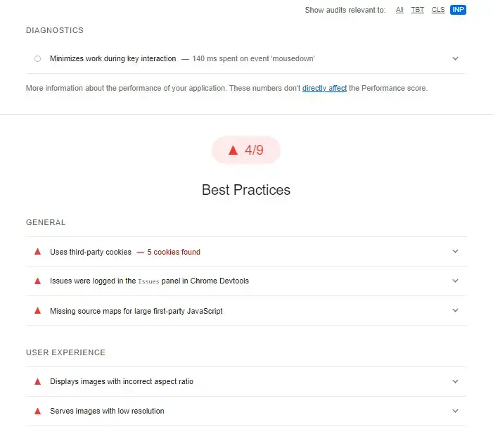 Dostaniemy w ten sposób wskazówki, co powinniśmy poprawić w ramach naszej strony internetowej w ramach wskaźnika INP.