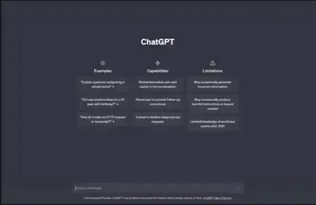 Główny pulpit nawigacyjny ChatGPT (https://chat.openai.com/).