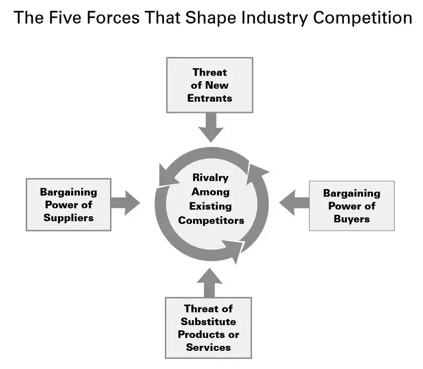Stan konkurencji zależy od pięciu podstawowych sił konkurencyjnych, wg Portera są to: