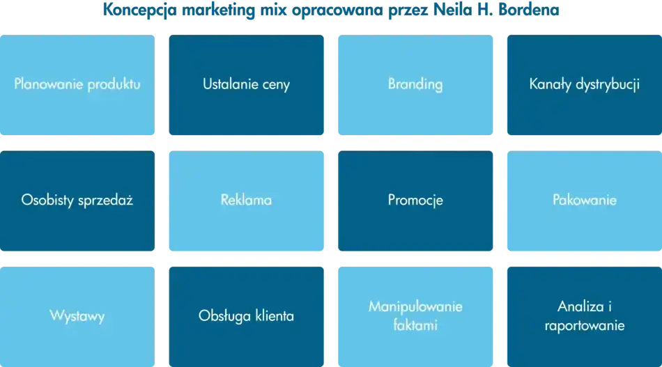 Marketing mix jest jednym z kluczowych frameworków marketingowych, który ukształtował podstawy nowoczesnego zarządzania marketingiem. Koncepcja marketing mix opracowana przez Neila H. Bordena, profesora marketingu na Uniwersytecie Harvarda, w latach 40. XX wieku. Borden zidentyfikował 12 elementów, które składają się na marketing mix przedsiębiorstwa.