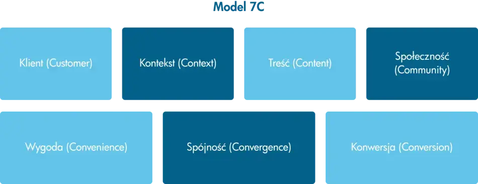 Model koncentruje się na zrozumieniu potrzeb współczesnego klienta oraz budowaniu długofalowych relacji. Model 7C obejmuje następujące elementy: