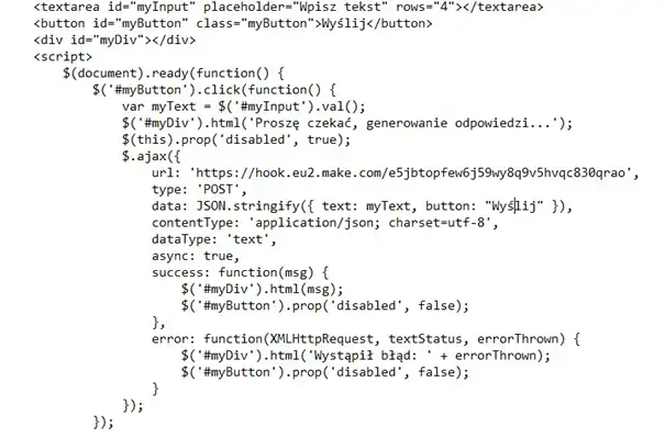 Ten link należy dodać do kodu strony za pomocą funkcji w JavaScript, która prześle na ten adres potrzebne dane i będzie oczekiwała na odpowiedź od scenariusza. Można dołączyć także funkcję, która wyświetli błąd, jeśli operacja nie dojdzie do skutku.