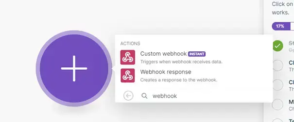 "Custom Webhook" to Webhook reakcyjny, który uruchamia scenariusz, kiedy na jego adres URL zostaną przesłane dane.