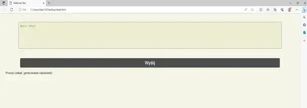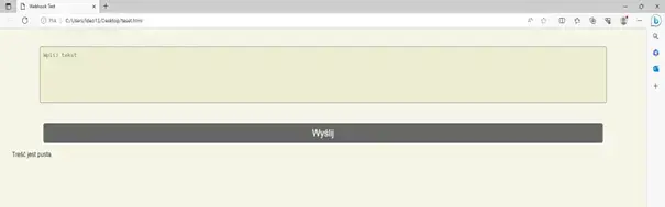 Tekst wygenerowany przez funkcję JavaScript po naciśnięciu przycisku.