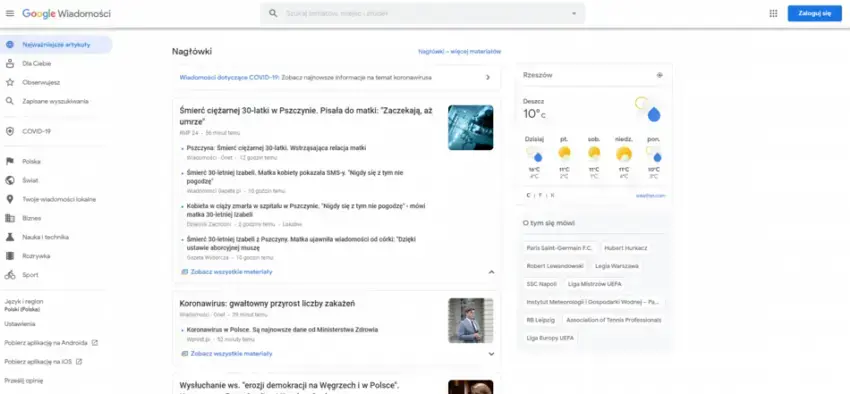 Zrzut przedstawiający stronę główną serwisu Google News.