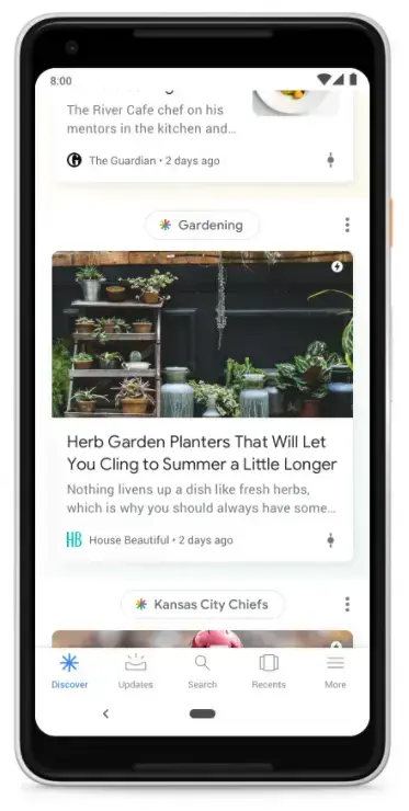 Widok aplikacji Google Discover, źródło: https://blog.google/products/search/introducing-google-discover/.