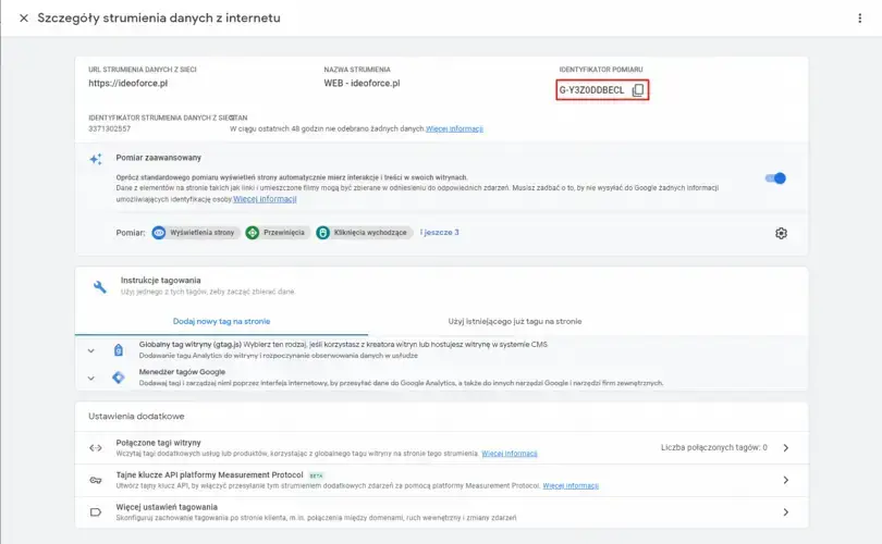 Analytics wygeneruje unikalny Identyfikator pomiaru. Skopiuj go.
