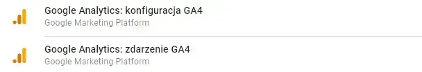 Google Tag Manager obsługuje usługi Google Analytics 4 za pomocą 2 współpracujących ze sobą tagów: