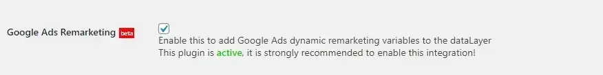 Następnie przechodzimy do zakładki Basic data -> Google Ads i włączamy remarketing variable: