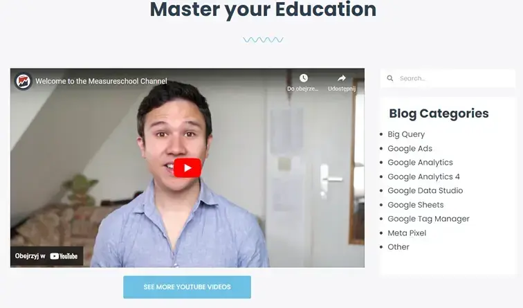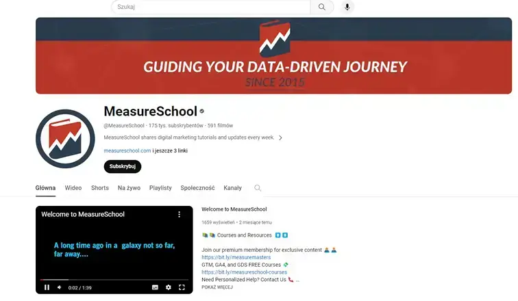 Skarbnicą wiedzy dla analityka internetowego jest również YouTube, na którym dostępne są filmy z wywiadami, ale też instruktaże i case study. W wielu przypadkach poszukuje się w nich konkretnego rozwiązania jakiegoś problemu, na podstawie którego możemy stawić czoła trudnościom, z jakimi się mierzymy.