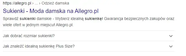 Odpowiednie oznaczenie sekcji pytań i odpowiedzi na temat danego produktu, też może generować ciekawe wyniki, które spełniają rolę informacyjną i oraz przyciągającą wzrok.