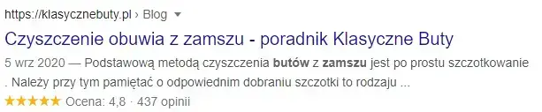 Tworząc stronę internetową nie możemy zapomnieć o tak ważnym składniku jak dane strukturalne. Są to fragmenty rozszerzone, których nie zobaczymy na pierwszy rzut oka na stronie. Jednak to właśnie one pomogą nam wyróżnić nasz link w gąszczu innych odpowiedzi Google, na nasze zapytanie. Dane strukturalne pomagają w wyodrębnieniu takich informacji o naszym produkcie jak cena produktu, czy ocena użytkowników.