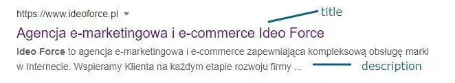 Jeśli pojawiamy się już na wysokich pozycjach, na frazy, które nas interesują, nie możemy na tym poprzestać. Teraz powinniśmy rozpocząć walkę o to, aby klient wybrał właśnie nasz link, spośród wielu innych. Jednym z ze sposobów na wyróżnienie właśnie swojej strony, jest zoptymalizowanie title oraz desription.