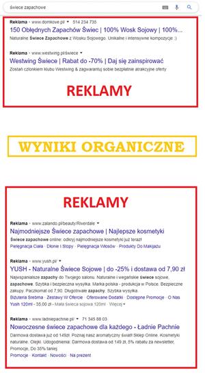 Warto również sprawdzić reklamy tekstowe dla haseł związanych ze sklepem internetowym, szczególnie te pojawiające się na pierwszej stronie wyników wyszukiwania.