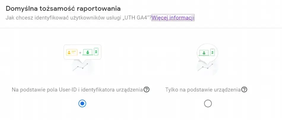 Na koniec warto dodać, że w ustawieniach usługi możemy wybrać tożsamość raportowania, czyli domyślny zakres opisanych wyżej sygnałów, na których podstawie mają być identyfikowani użytkownicy.