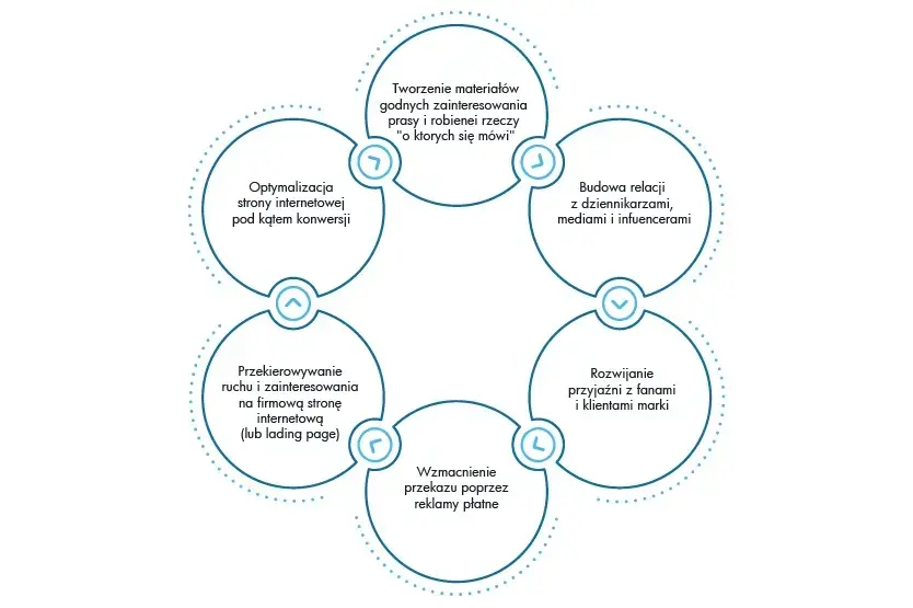 Press & Word-of-Mouth Flywheel - zarówno wzmianki w prasie, jak i rekomendacje klientów z całą pewnością działają na naszą korzyść, ponadto nazywa się to „darmową reklamą”, gdyż ponosimy tylko koszty związane z zapewnieniem dobrego doświadczenia z marką, a wynikających z tego opinii nie można już kupić.