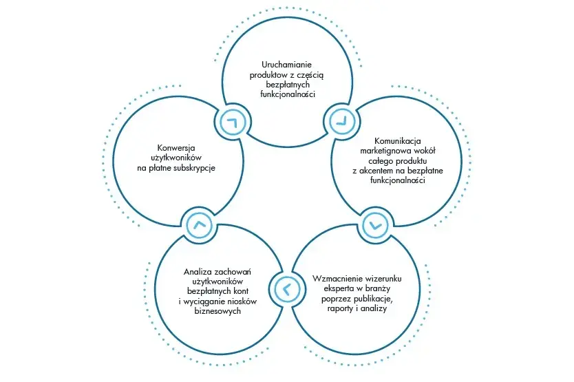 Freemium Flywheel - freemium to połączenie terminów free oraz premium, a celem tej idei jest zaangażowanie klientów poprzez dostarczanie im darmowych wersji demo lub bezpłatnych okresów próbnych, dzięki którym mogą doświadczyć naszej marki przed zdecydowaniem się na zakup.