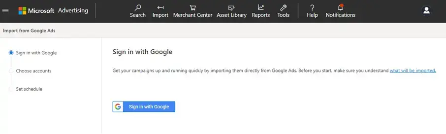 Teraz skupmy się jednak na tym, jak przeprowadzić import kampanii z Google Ads do Microsoft Ads. To jedno z najprostszych rozwiązań dla firm, które chcą zacząć reklamować się w tym ekosystemie, by sprawdzić, jakie wyniki będą w stanie osiągnąć.