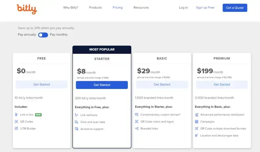 Narzędzie zapewnia opcję tworzenia tzw. linków w BIO, które pozwalają na umieszczenie wielu istotnych hiperłączy w jednym miejscu za pomocą specjalnych mikrostron. Dodatkowo Bitly.com generuje spersonalizowane kody QR. Dostępne są 4 pakiety, spośród których można wybrać odpowiedni dla swoich potrzeb.