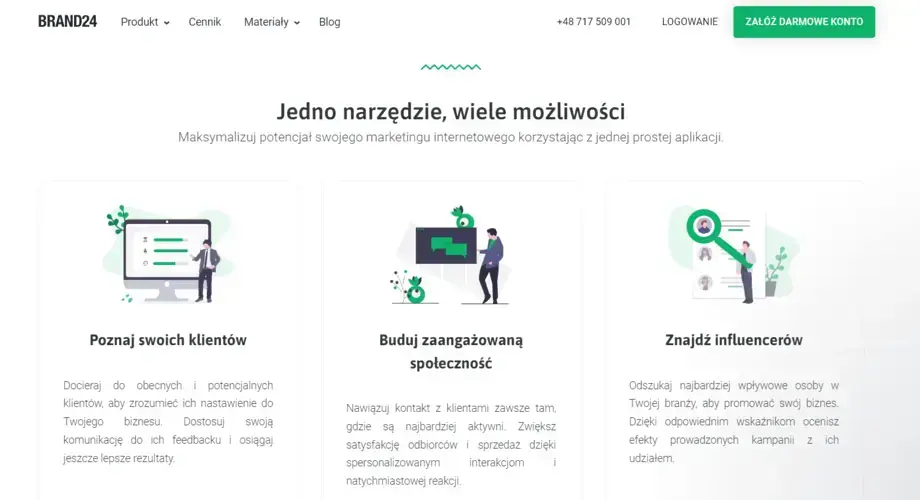 Brand24 to jedno z najpopularniejszych i najczęściej wykorzystywanych narzędzi do monitorowania social media. Umożliwia śledzenie nie tylko mediów społecznościowych, ale i całego Internetu pod kątem określonych słów kluczowych.