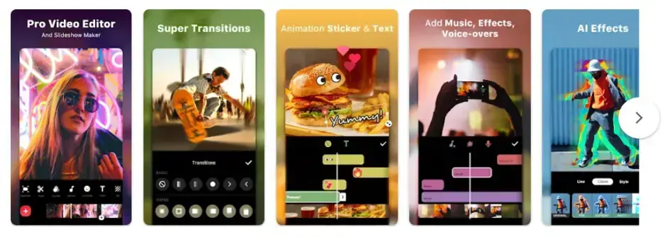 Jeśli materiały mają wyróżniać się profesjonalizmem i kreatywnością, to InShot zdecydowanie w tym pomoże. W aplikacji można dodać muzykę, kreatywne przejścia, nałożyć kolorowe filtry, napisy czy naklejki.