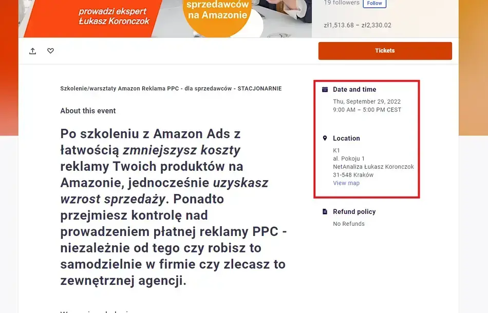 Warto zadbać również o poziomy przepływ użytkowników. Pokażmy na podstronie wydarzenia inne imprezy tego samego organizatora lub eventy z tej samej kategorii tematycznej. Użytkownicy na pewno to docenią.