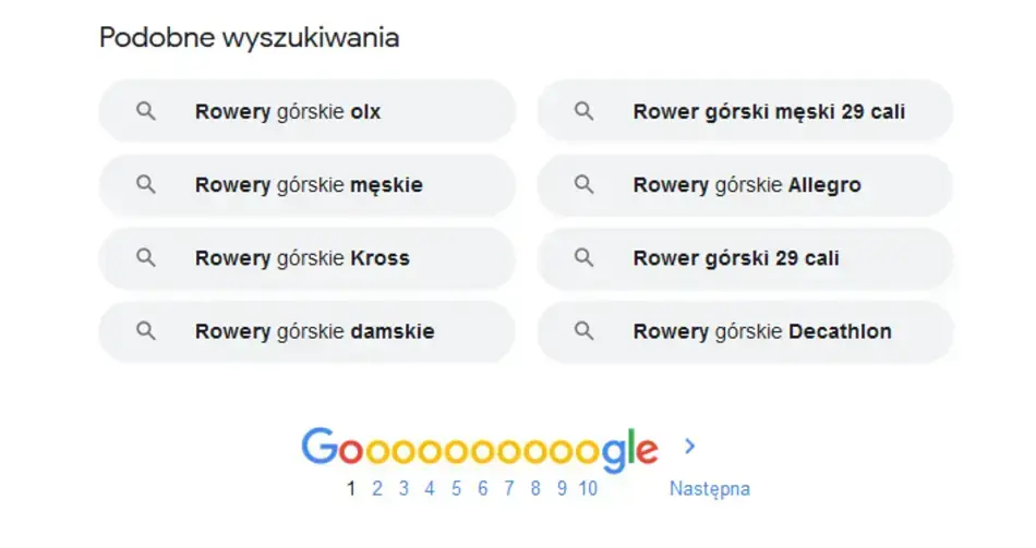 2. Po otrzymaniu wyników, pod ostatnim SERP-em również pojawiają się podobne wyszukiwania.