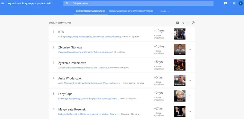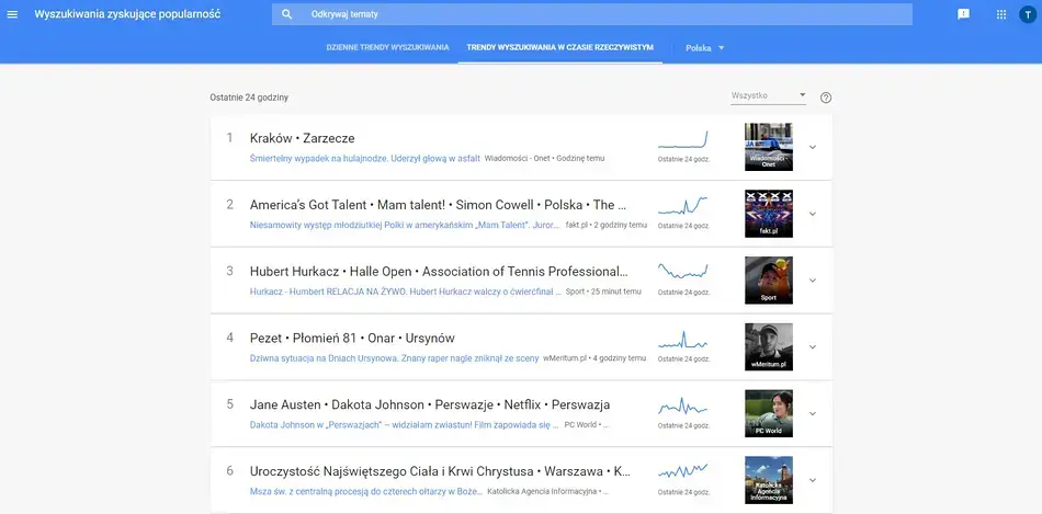 Google Trends - https://trends.google.com/trends/trendingsearches/daily?geo=PL.