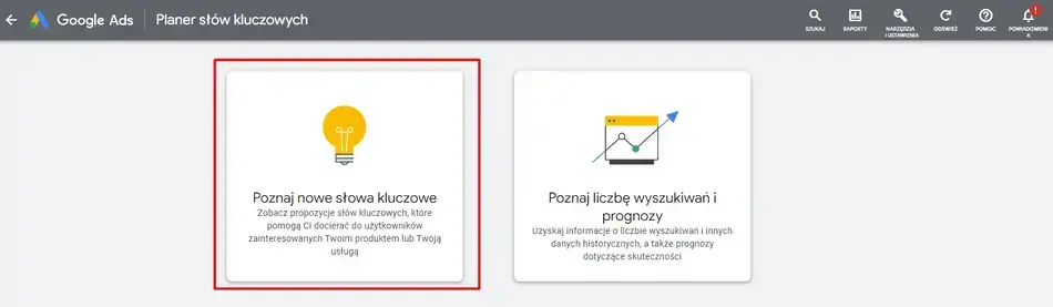 Fakt, że jest to darmowe narzędzie oferowane przez Google oznacza, że warto skorzystać z jego wsparcia. Jedną z jego przydatnych funkcji jest „Poznaj nowe słowa kluczowe”.