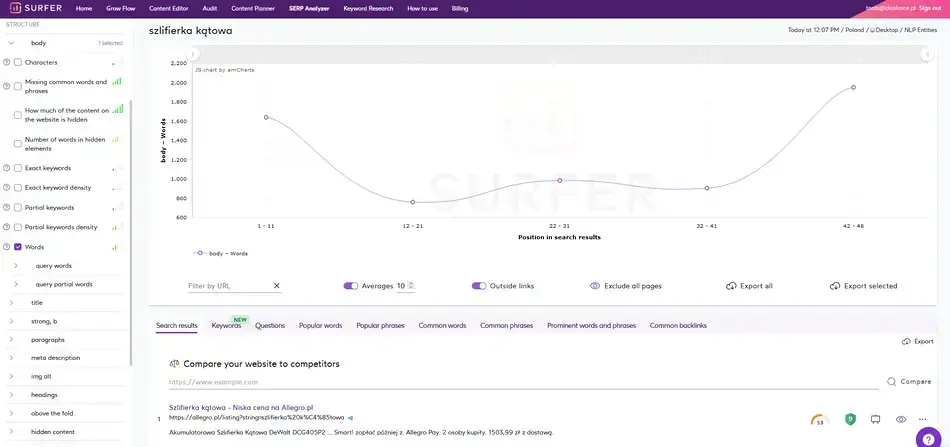Umiejętne wykorzystanie Surfera pozwala podnieść pozycje w organicznych wynikach wyszukiwania. Co ważne nawet podstawowa znajomość narzędzia, umożliwia wykonanie zaawansowanych analiz w sposób intuicyjny.