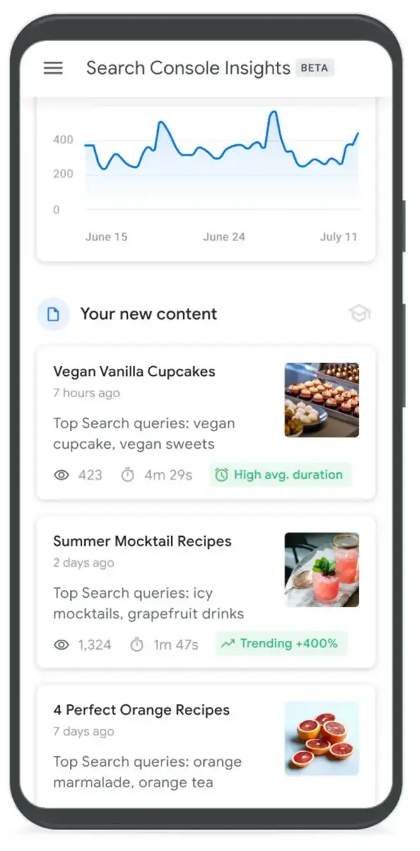 Search Console Insights zadebiutowało w publicznej fazie beta w czerwcu 2021 roku i skierowane zostało przede wszystkim do twórców treści i wydawców.