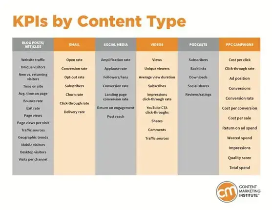 Dashboard’y służą do mierzenia skuteczności kampanii content marketingowych, ale też działań w mediach społecznościowych, SEO, e-mail marketingu, kampanii reklamowych. Systemy Content Campaign Dashboard ułatwiają zarządzanie danymi oraz informują o tym, czy udostępniane treści wywołały zamierzony efekt. Wybór wskaźników zależy od rodzaju treści, co też podpowiada Content Marketing Institute: