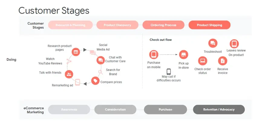 W zobrazowaniu i usprawnieniu poszczególnych elementów w ścieżce zakupowej klienta tworzy się Customer Journey Map – graficzną analizę poszczególnych kroków, na podstawie której dokonuje się oceny pod kątem użyteczności i przyjemności z korzystania jaką może czerpać klient.