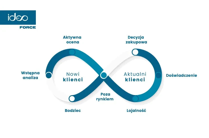 Zwróć jednak uwagę, że cała podróż klienta nie ma budowy linearnej, ale bardziej przypomina spiralę, bądź pewien ciąg mogących się powtarzać czynności. To, że użytkownik raz (np. na samym początku) sprawdził opinie na temat produktu w social media nie oznacza, że nie sprawdzi jeszcze raz opinii o tymże produkcie wyszukując recenzji produktowych w popularnych serwisach internetowych.