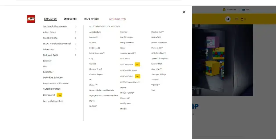 W powyższym przykładzie mamy do czynienia z mnogością wyboru, ale jednocześnie jest łatwo i przyjemnie dla użytkownika. Źródło: lego.com.