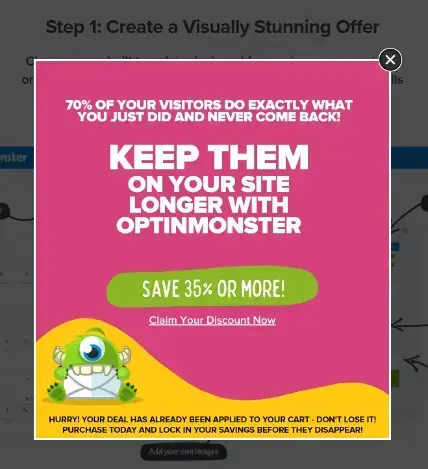 Exit popup z rabatem. Źródło: https://optinmonster.com/.