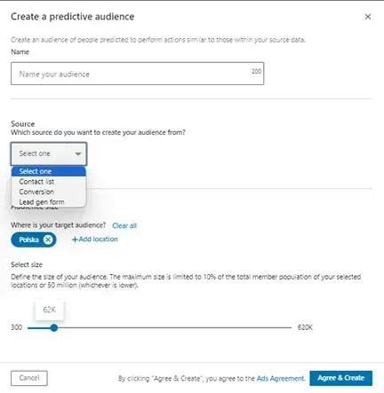 Na niektórych kontach reklamowych na platformie LinkedIn pojawiła się możliwość tworzenia grup odbiorców, składających się z osób o cechach podobnych do istniejącego źródła danych.