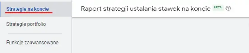 W panelu Google Ads pojawiła się nowa sekcja - „Strategie na koncie”. Dzięki niej możemy wyświetlić skuteczność strategii ustalania stawek w kampanii na poziomie konta, pogrupowaną według typu strategii ustalania stawek.