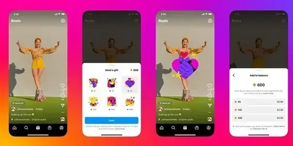 Instagram wprowadza możliwość przesyłania wirtualnych prezentów twórcom Reels z różnych regionów. Prezenty te generują przychody dla twórców i są dostępne w różnych cenach. Kupuje się je za pomocą gwiazdek - waluty Meta w aplikacji.