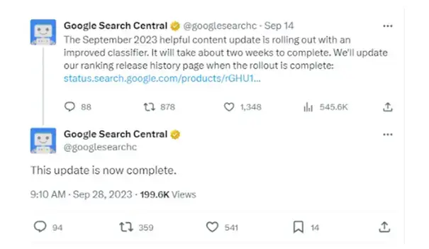 September 2023 Helpful Content Update dobiegł końca. Jego wdrożenie w wyszukiwarce Google trwało 13 dni i 11 godzin. Obecnie prowadzone są analizy danych, jednakże istnieją solidne powody do tego, by sądzić, że ten update negatywnie wpływa na treści, które nie są uznawane za wiarygodne źródło informacji.